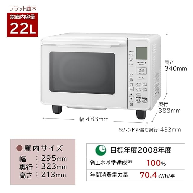 商品名:日立 オーブンレンジ 22L MRO-HE4C W ホワイト フラット 庫内 250℃ オーブン1段 電子レンジ 新生活 一人暮らし 1年