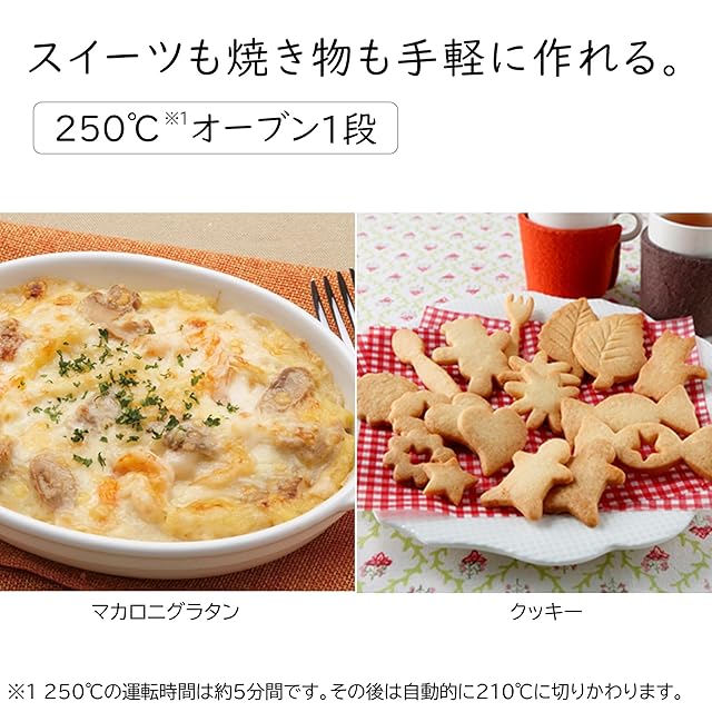 250℃オーブン1段で、スイーツも焼き物も手軽に作れる。