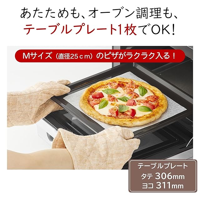 "あたためもオーブン調理もテーブルプ レート1枚でできる。"