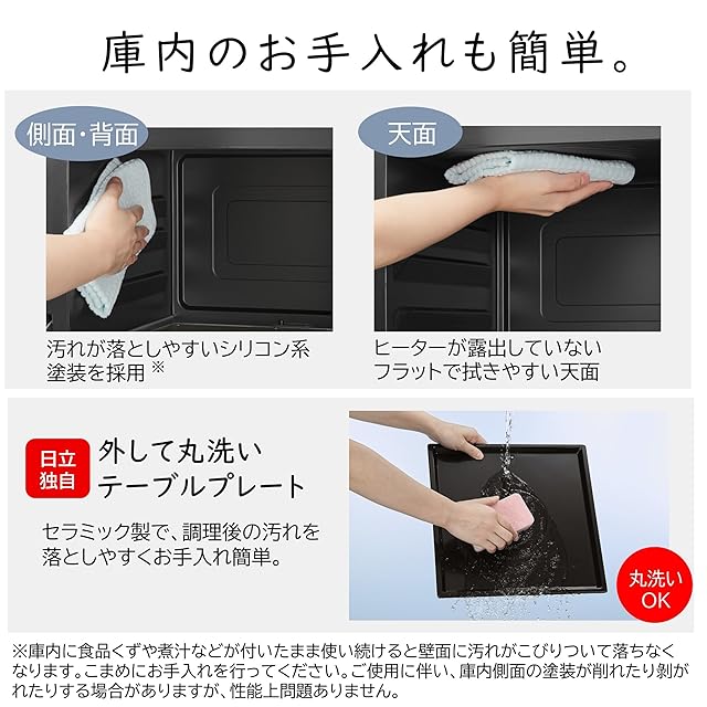 シリコン系塗装の庫内側面・背面と、拭きやすいフラットな天面で、庫内のお手入れも簡単。