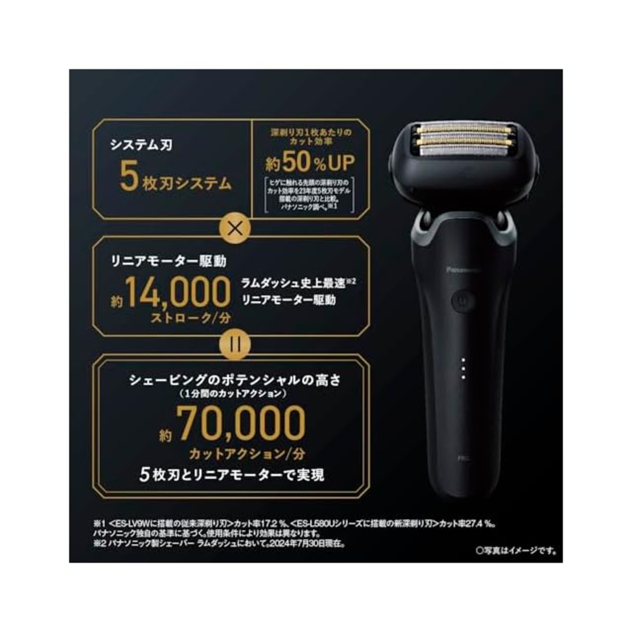 5枚刃システム×高速リニアモーターで、濃いヒゲもしっかり深剃り