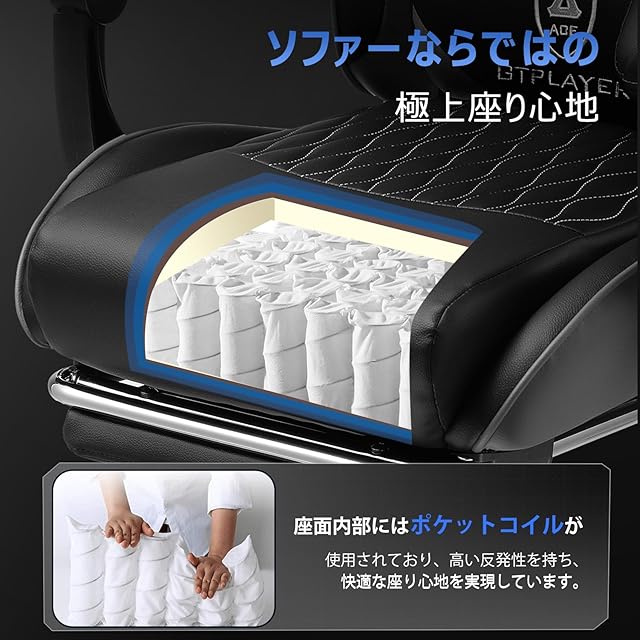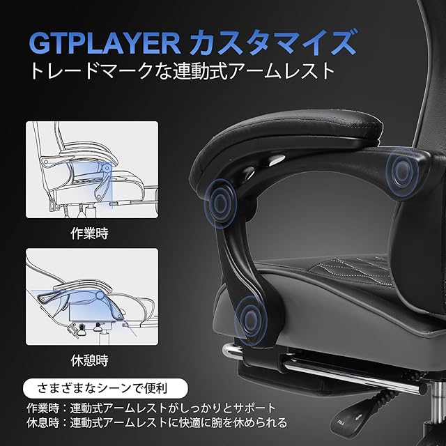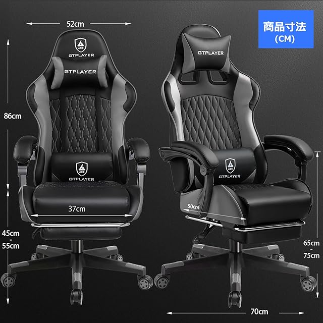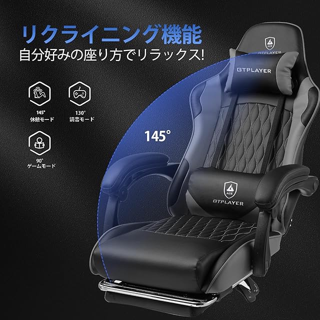 商品名:GTRacing ゲーミングチェア オフィスチェア デスク pcチェア 椅子 テレワーク 145°リクライニング オットマン付き ゲームチェア ハイバック ランバーサポート ポケットコイルが内蔵 PUレザー (GRAY)