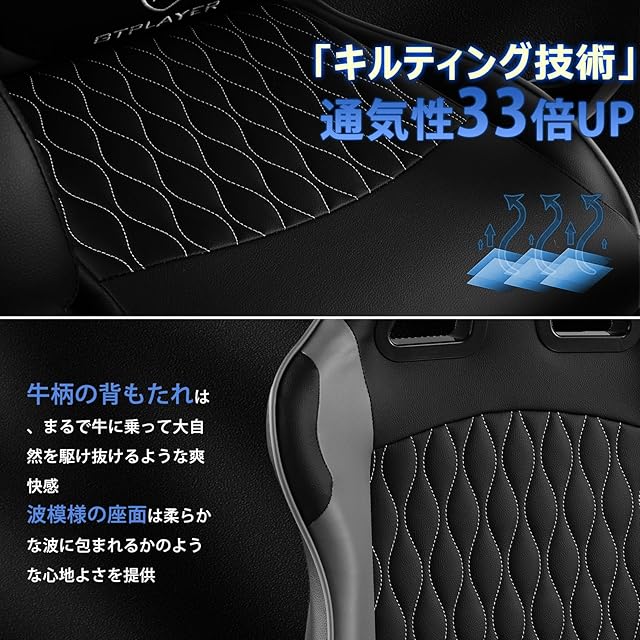 【新たな時代の革新的デザイン、快適なゲーミングチェア】背もたれには乳牛の斑点デザイン、座っている感じがまるで牛の背中に乗っているかのようで、爽快な感触があります。キルティング技術は通気性が33倍UP、座面にはポケットコイルが配置されて、快適な座り心地を提供します。連動アームレストとリクライニング機能により、さまざまな座り方に適応できます。