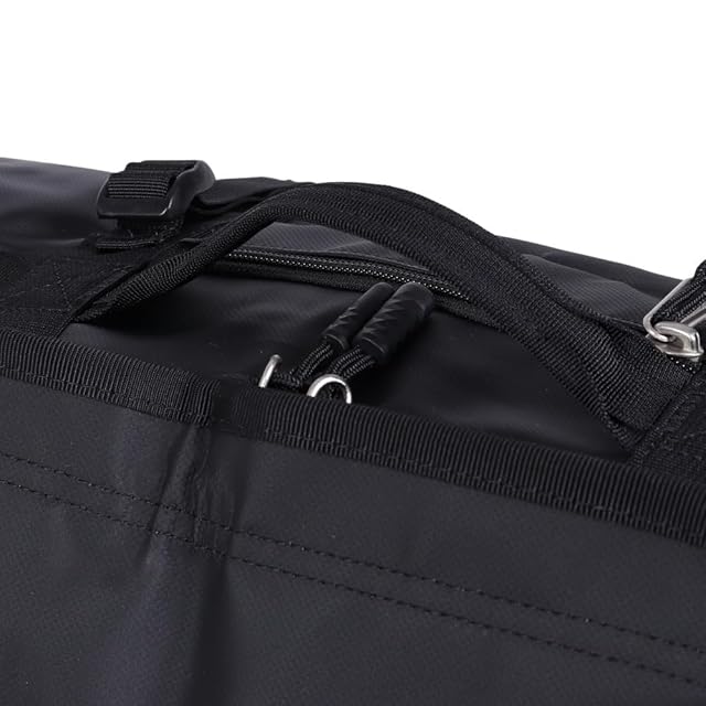 背負うことのできるショルダーハーネス/D字型で大きく開くファスナーオープニング/強度の強いバータックとステッチ/両サイドに荷揚げ用ハンドル/4本のコンプレッションストラップ/サイドデイジーチェーン/フラップ裏にメッシュポケット/IDウィンドウ/収納用メッシュバッグ付属/ジッパーつきの小型フロントポケット/サイドにキャリー用のグラブハンドル/USA企画