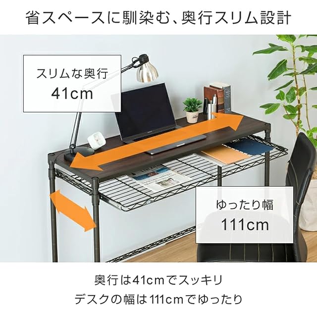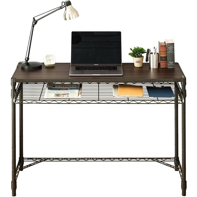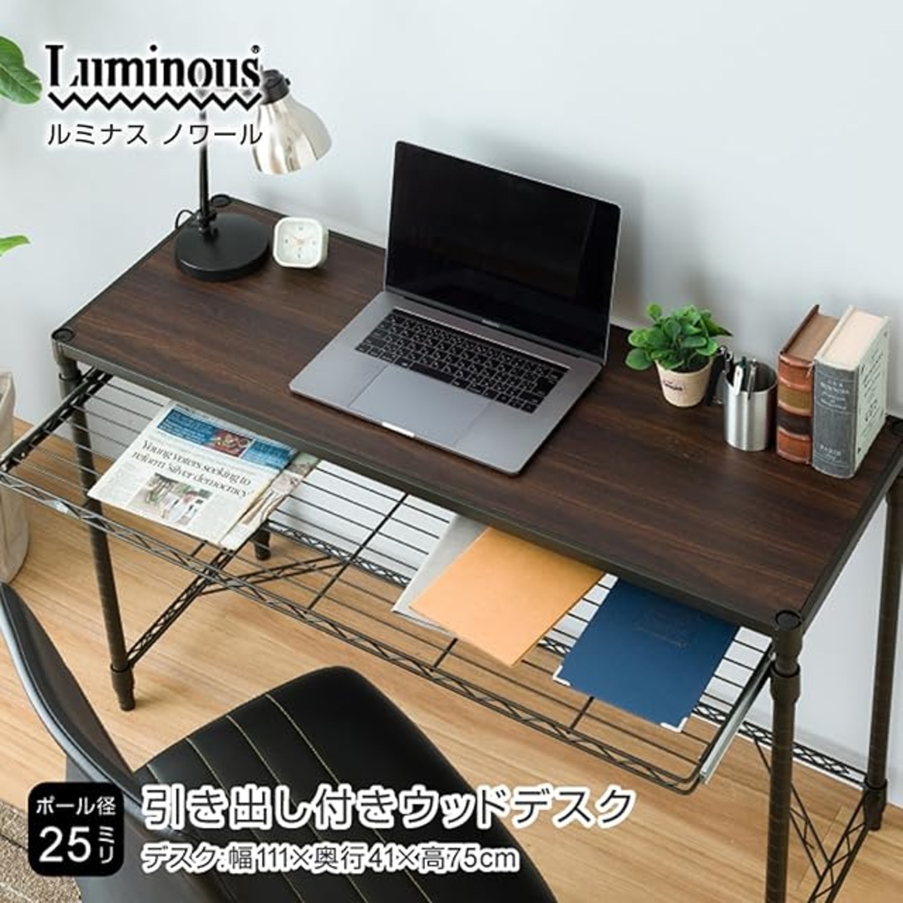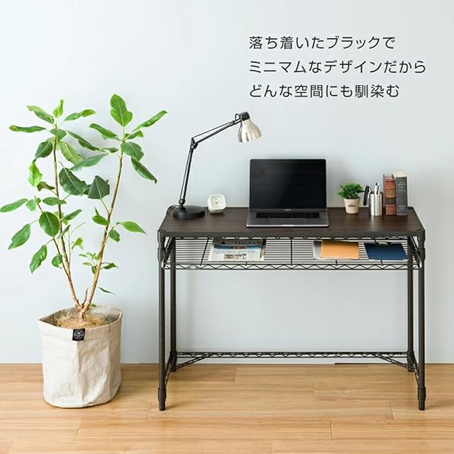 ドウシシャ ルミナス ノワール デスク 机 キッチンボード 作業台 黒 2段 幅110 奥行40 スライド棚付き ウッドシェルフ スチールラック 頑丈 コの字バー ブラック おしゃれ 幅81×奥行41×高さ75cm 耐荷重80kg NO1175-HD | emishop315