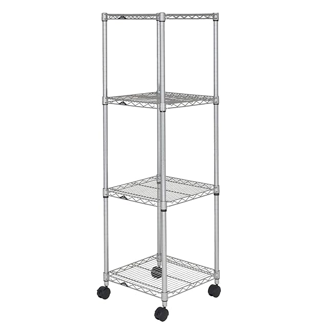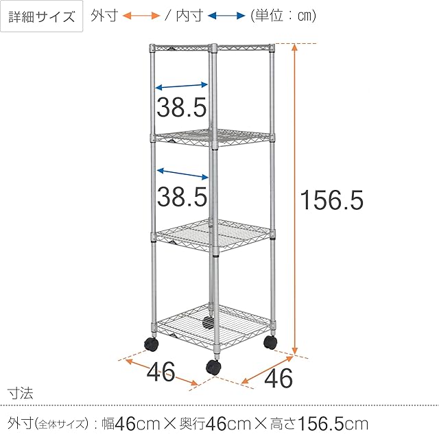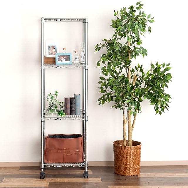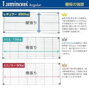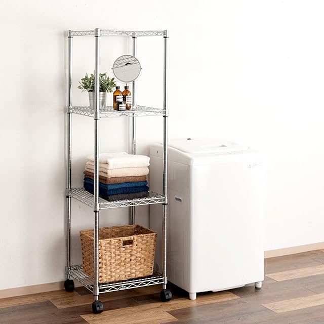 商品名:ドウシシャ ルミナス レギュラー ラック スチールラック 収納棚 幅45 4段 隙間収納 防錆加工 業務用 耐荷重250kg (棚板1枚あたり) キャスター付き 豊富なカスタムパーツ ポール径25mm 幅46×奥行46×高さ156.5cm NLH4615-4