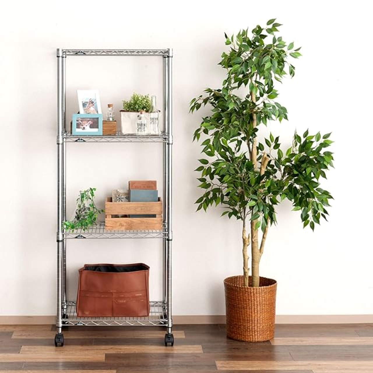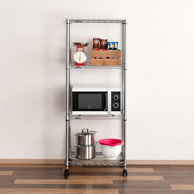 商品名:ドウシシャ ルミナス レギュラー ラック スチールラック 収納棚 幅60 4段 隙間収納 防錆加工 業務用 耐荷重250kg (棚板1枚あたり) キャスター付き 豊富なカスタムパーツ ポール径25mm 幅61×奥行46×高さ156.5cm NLH6015-4