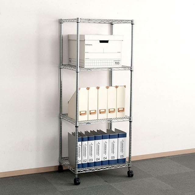 ドウシシャ ルミナス レギュラー ラック スチールラック 収納棚 幅60 4段 隙間収納 防錆加工 業務用 耐荷重250kg (棚板1枚あたり) キャスター付き 豊富なカスタムパーツ ポール径25mm 幅61×奥行46×高さ156.5cm NLH6015-4 | emishop315