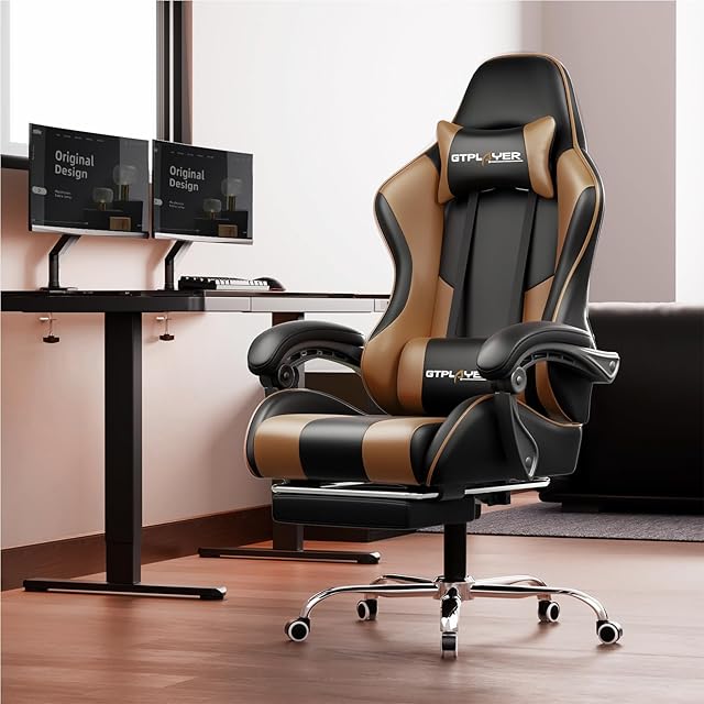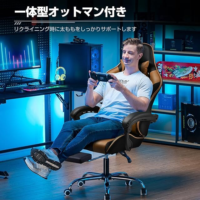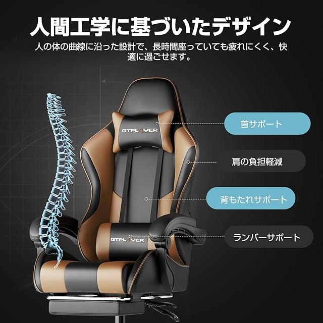 商品名:GTRacing ゲーミングチェア オットマン付き デスクチェア pcチェア 椅子 140°リクライニング パソコンチェア イス テレワーク デスクチェア ゲームチェア ハイバック ヘッドレスト ランバーサポート ひじ掛け付き PUレザー 気孔付き皮革 蒸れない座面 ブラウン (GTPlayerシリーズGT800-BROWN)