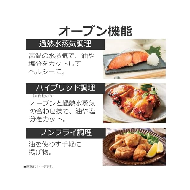 ✅【お手入れ簡単】「遠赤・脱臭ブラックコート」庫内には遠赤放射率の高い脱臭コーティングを採用。*扉部・底面を除く。【お手入れ】手間なしお手入れコース(10分)。過熱水蒸気だからスチームで汚れを浮かし、ラクラクお手入れ。フラットな丸い天井で拭きやすい。