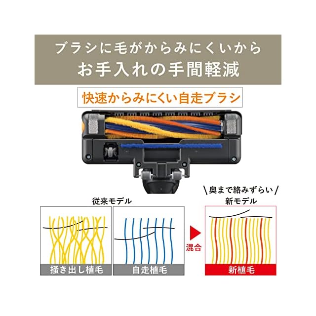 【「快速からみにくい自走ブラシ」が、毛のからみにくさと自走感を両立】様々な床面がある日本の住環境に適した植毛。
