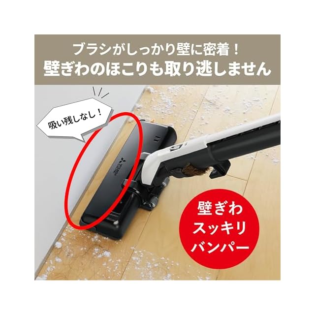 【壁ぎわのゴミもしっかり吸い込む】ブラシが壁に密着して壁ぎわのゴミもしっかり吸い込みます