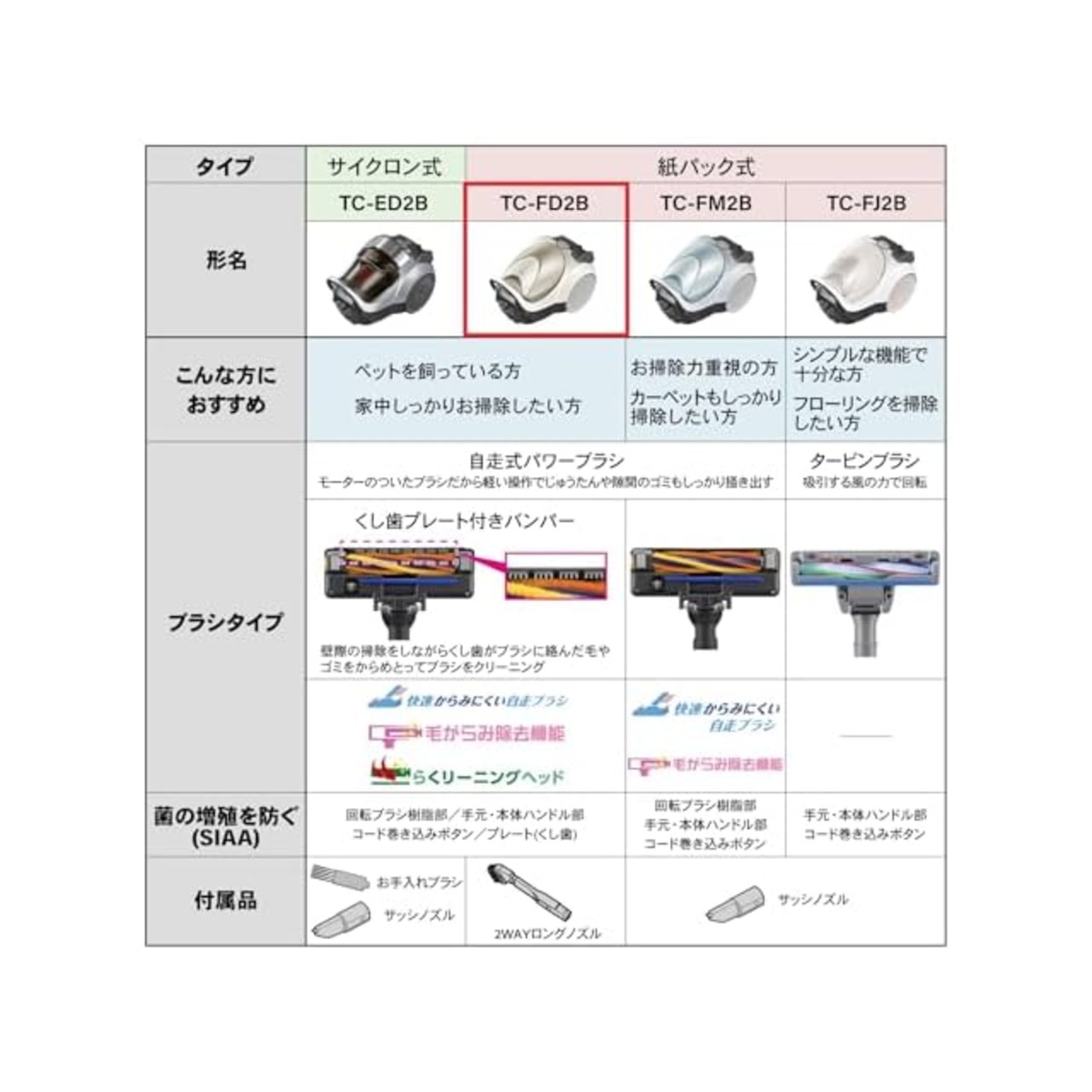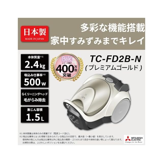 商品名:三菱電機 Mitsubishi Be-K(ビケイ) 紙パック掃除機 小型 軽量 自走式パワーブラシ からみにくい 日本製 TC-FD2B-N プレミアムゴールド