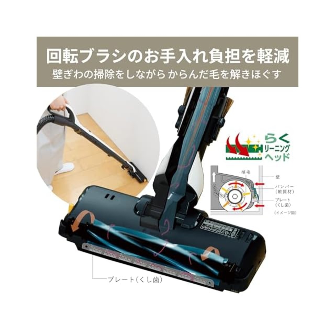 【壁ぎわの掃除中壁や家具に当たることで回転ブラシについた毛やゴミをからめとって吸引!】