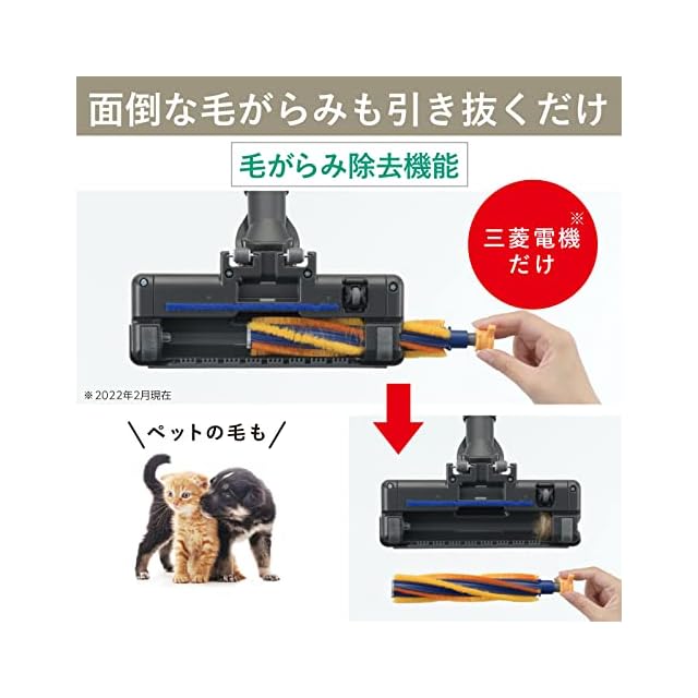 【毛がらみ除去もワンタッチ】回転ブラシの面倒な毛がらみもサッと引き抜くだけで簡単除去。引き出した回転ブラシは水洗いで清潔に。