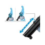 使いやすい長さへノズルが伸縮。使用者の身長に合わせてノズル長さをツールレスで調整可能。全長760~1,010mmまで50mm毎に6段階調整。大開口ダストバッグ(25L)。ファスナーの開口幅を大きくし、ゴミの捨てやすさが向上。肩掛けバンド付。長時間作業でも疲れにくい。