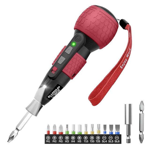 Yacooda 電動ドライバー 小型 強力 トルク3段階調整 【高い同心度・ビット振れ軽減】 電動4N.m 手動12N.m USB-C充電式 高輝度LEDライト 軽量 DIY 操作簡単 女性/初心者対応 電動ドリル ペン型 父の日 誕生日プレゼント レッド | emishop315