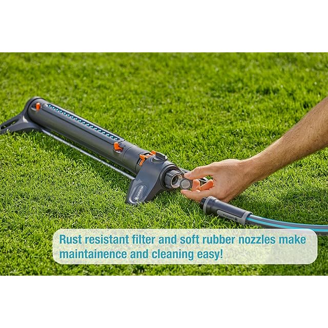 特長: 簡単な設置。散水幅と長さの調節も直観的にレバーで調整。 お手入れも簡単。ステンレス製のフィルターは取り外して掃除可能