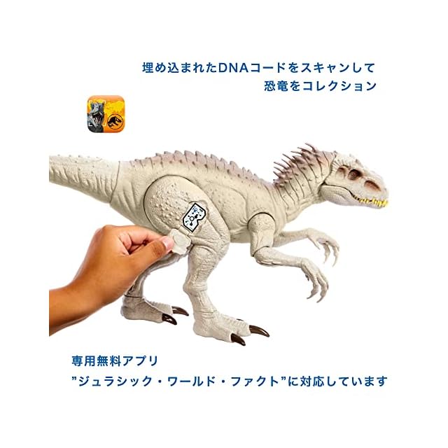 【内容】しっぽで動かして、インドミナス・レックスの上体の動きをコントロール!ボタンを押すと、からだが光り、口を開けてほえる、迫力満点のインドミナス・レックス。フィギュアと連動する無料アプリ「ジュラシック・ワールド・ファクト」に対応しており、DNAコードをスマートフォンでスキャンすることで恐竜をコレクションできます。 Universal City Studios LLC and Amblin Entertainment, Inc. All Rights Reserved.