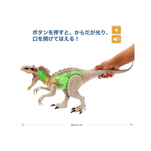 商品名:マテル ジュラシックワールド(JURASSIC WORLD) スーパーアクション! ひかる インドミナス・レックス【全長:約60㎝】 【4才~】 HNT63