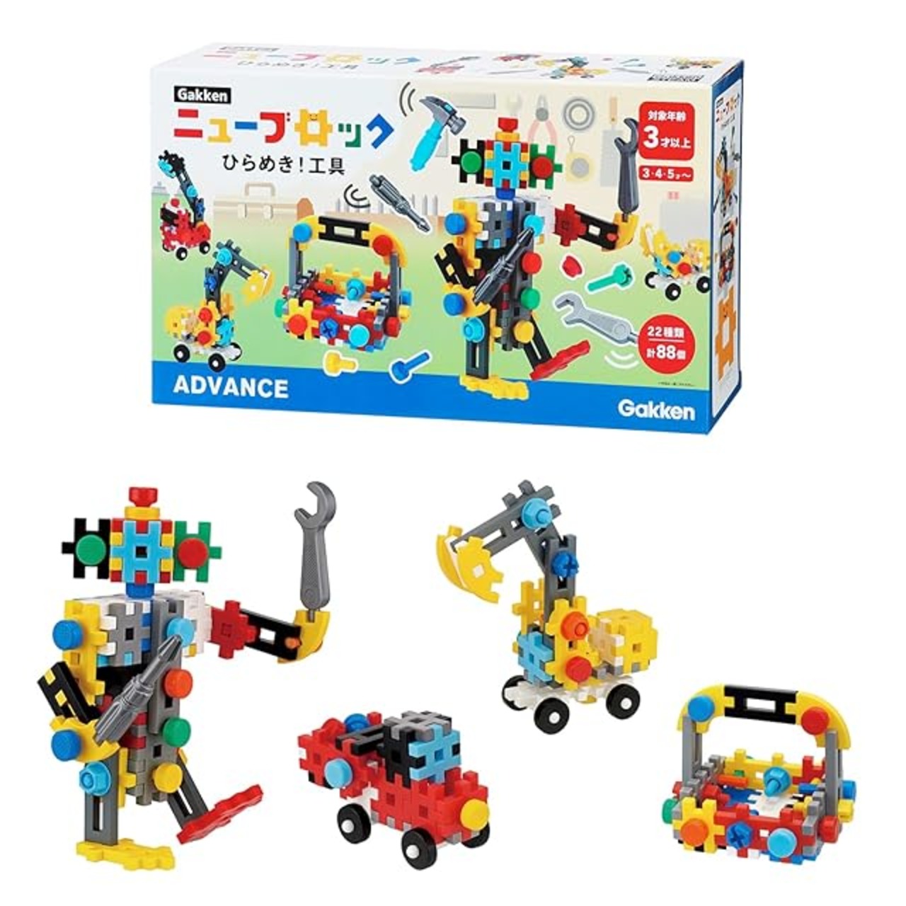 商品名:学研 Gakkenニューブロック ひらめき! 工具(対象年齢:3歳以上) 83734