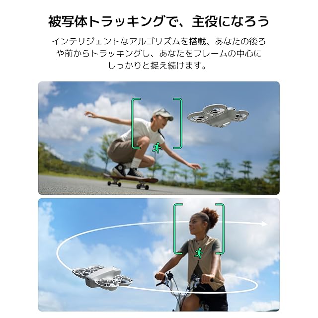 ✅【被写体トラッキング・簡単にプロ級映像撮影】-DJI Neoは被写体トラッキングと8つのクイックショットモードであなたをスマートに追従できます。サイクリング、スケートボード、ハイキング中でもプロフェッショナルな映像が簡単に撮影可能。最高速8m/s、最大3000mの高度でも安定した撮影ができます。