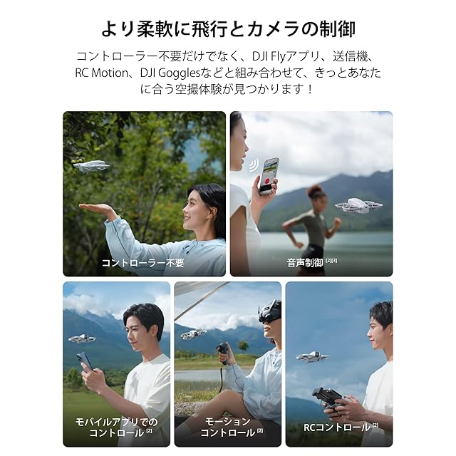 ✅【多彩操作! DJI Neoで自由自在の飛行】Neoは音声操作(EN/CN)、モバイルアプリ、RCでの操縦が可能で、誰でも簡単に楽しめます。誕生日会や家族でのピクニック撮影もお任せ。リモコン使用で日本国内6kmの映像伝送が可能。DJI Goggles 3やRC Motion 3と連携し、臨場感溢れる飛行体験も楽しめます!