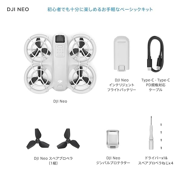 ✅スタンダードDJI Neoにはバッテリー、プロペラガードなどが付属しており、コントローラー不要で、スマートフォンからの操作ですぐに使用できます。