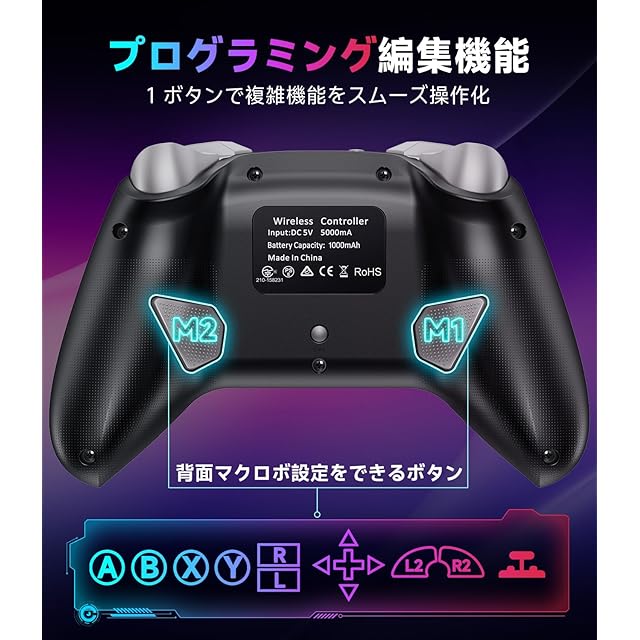 【4段HD振動&背面マクロボ&RGBライト】高感度モーションコントロールで精密な視点操作を実現。★4段HD振動の科学:スイッチ コントローラーは内蔵4段階振動(0%/30%/70%/100%)を搭載し、ゲーム内の物理演算と連動します。優れた振動により、臨場感が劇的に強化されます。 ★背面のM1/M2ボタンを使うことで、最大32個の連続コマンドを記録・実行できます。スムーズな操作性を実現。 ★プロコントローラーSwitchには9色のRGBライトと4種類のライトモードが搭載されており(RGBライトモード(デフォルトモード)/呼吸モード/レーザーモード/消灯)ゲームの雰囲気やお好みに応じて、ワンタッチで簡単にカスタマイズ可能です。