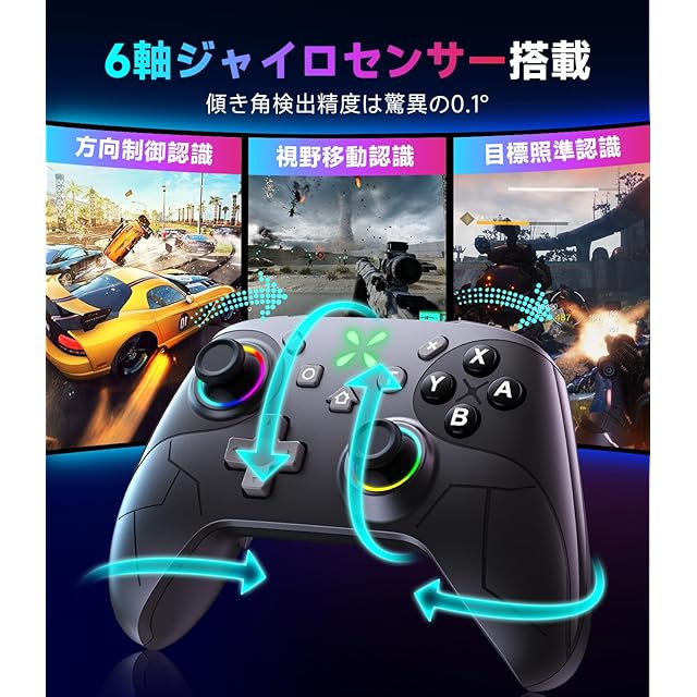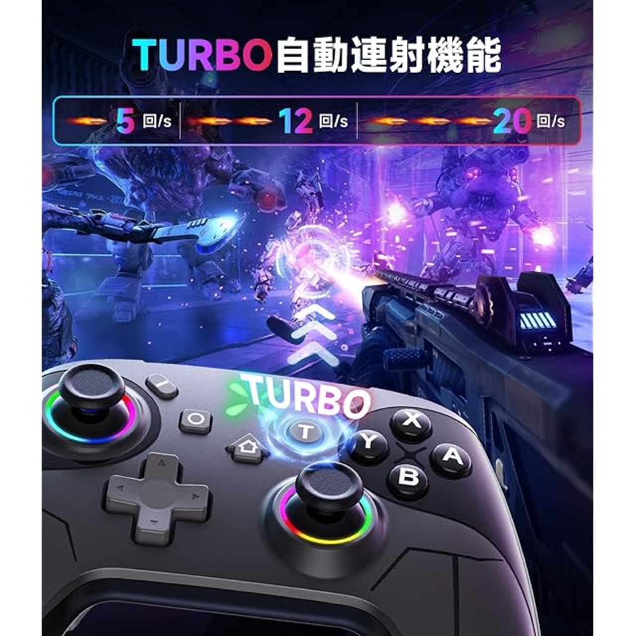 【Turbo連射機能&6軸ジャイロセンサー】 スイッチコントローラーは競技向けに設計された高性能な戦術支援機能を搭載。★Turbo機能を利用できるボタンは(A、B、X、Y、L、R、ZL、ZR)ボタンです。さらに、Turbo自動連射機能を搭載し、ゲームに応じて連射速度を5発/秒・12発/秒・20発/秒から選択でき、ゲームの種類に合わせたカスタマイズが可能です。★6軸ジャイロセンサー超進化:傾き角検出精度は驚異の0.1°(従来品の3倍)。ベストマッチを狙うことができる!オンライン対戦やアクションゲームで、これまでにない速さと精度を実現します。