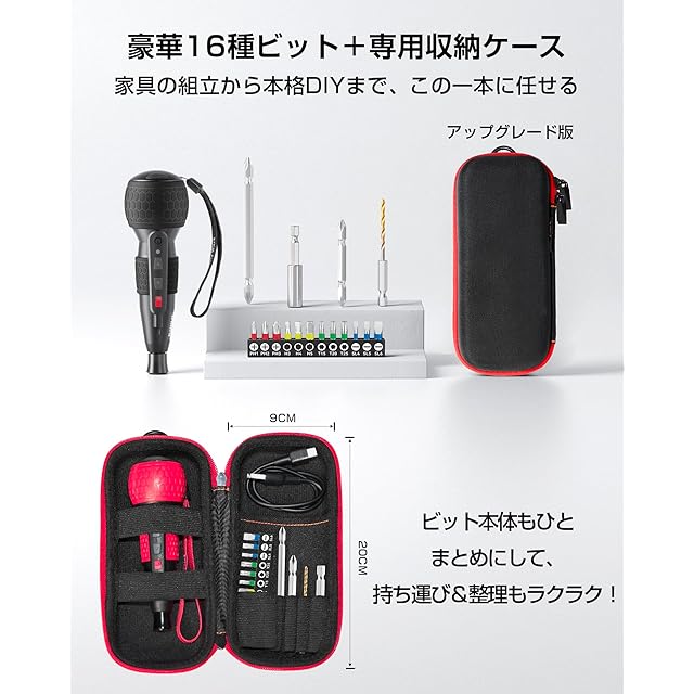 ✅【豪華16点ビットセット・収納ケース付き】充実した16点セット!ビット12個、延長ビット1本、両頭ビット2本、D2.5ドリルビット1本。✅これらのビットは、PH1、PH2、PH3、H3、H4、H5、T15、T20、T25、SL4、SL5、SL6の国際標準に対応し、様々な作業に最適です。✅D2.5ドリルビットは簡単にネジ穴を開けるのに便利。✅さらに、専用収納ケース付きで、電動ドライバー本体やビット、ドリルビット、充電ケーブルなどもスッキリ収納できます!