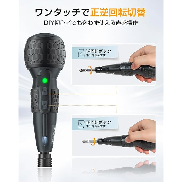 ✅【初心者に最適!電動・手動兼用】DIYや家具の組み立てなどの作業を格段にアップされる人気アイテム・電動ドライバー、ボタンを押すだけねじを締めたり緩めたりすることができます。女性、老人 、子供でも問題なく使いこなすようになります。効率よく作業を進めることができます。手動での作業も可能です。それぞれの部品やネジのサイズによって、適切な締め付けトルクがあります。電動である程度まで入れてから最後に手動でネジを回すことで、適切なトルクで締めることができます。