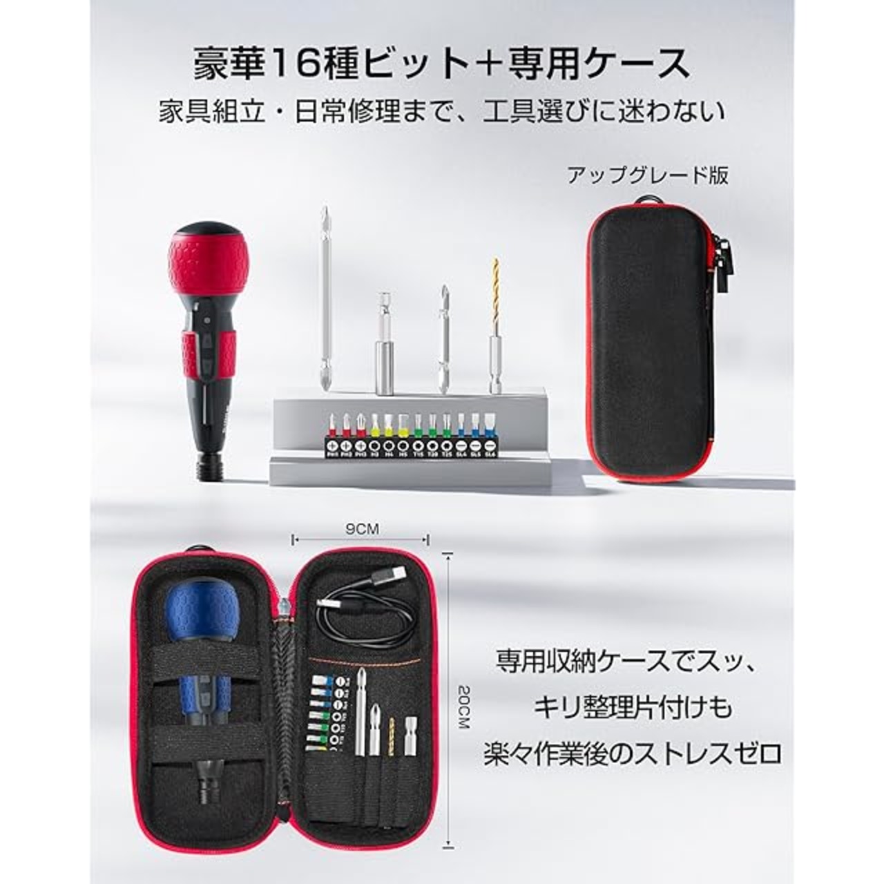 商品名:Yacooda 電動ドライバー 小型 強力 【16点ビット付き 収納ケース付き】 電動4N.m 手動10N.m USB-C充電式 高輝度LEDライト 軽量 DIY 操作簡単 女性/初心者対応 2025バージョンアップ版 敬老の日 誕生日プレゼント ブラック