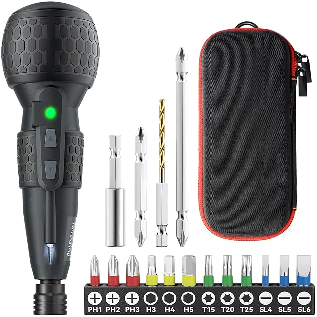 Yacooda 電動ドライバー 小型 強力 【16点ビット付き 収納ケース付き】 電動4N.m 手動10N.m USB-C充電式 高輝度LEDライト 軽量 DIY 操作簡単 女性/初心者対応 2025バージョンアップ版 敬老の日 誕生日プレゼント ブラック | emishop315
