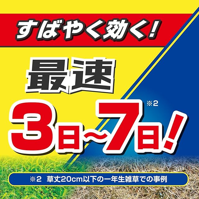 除草効果は最速3~7日であらわれはじめ、約2週間で枯れてきます。