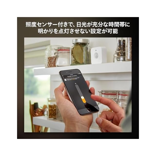 【自動で照明をオンオフ】動きを感知すると自動的にHue照明が点灯します。動きを感知しなくなってから消灯させるまでの時間を1分~60分まで設定ができます。
