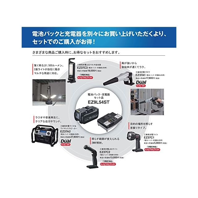 パナソニック(Panasonic) リチウムイオン電池パック (Li-ion) 充電器セット 18V 5.0Ah大容量・高負荷対応LJタイプ EZ9L54 / 急速充電器 EZ0L81 (10.8V 14.4V 18V 21.6V 28.8V対応) EZ9L54ST | emishop315