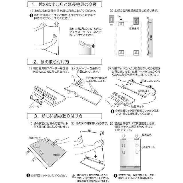 ※5mm厚の鏡で鏡止め金具が交換可能なタイプであれば東プレ製以外のメーカーの鏡にも取り付け可能です。