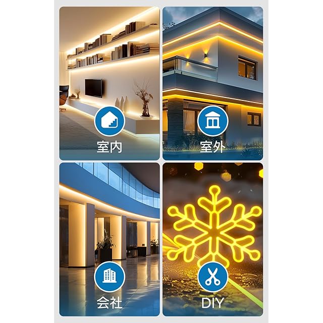 【曲がりやすい&IP67防水】LEDネオンライトは高品質素材を厳選して、耐久性と柔らかさがありますので、360°曲がりが可能です。ネオンライト外部はシリコンチューブが付きで、IP65防水可能、屋外でも安心してお使いいただけます。 (屋外で使用する場合は、必ずプラグ、とエンドキャプに防水処理を行ってください。)