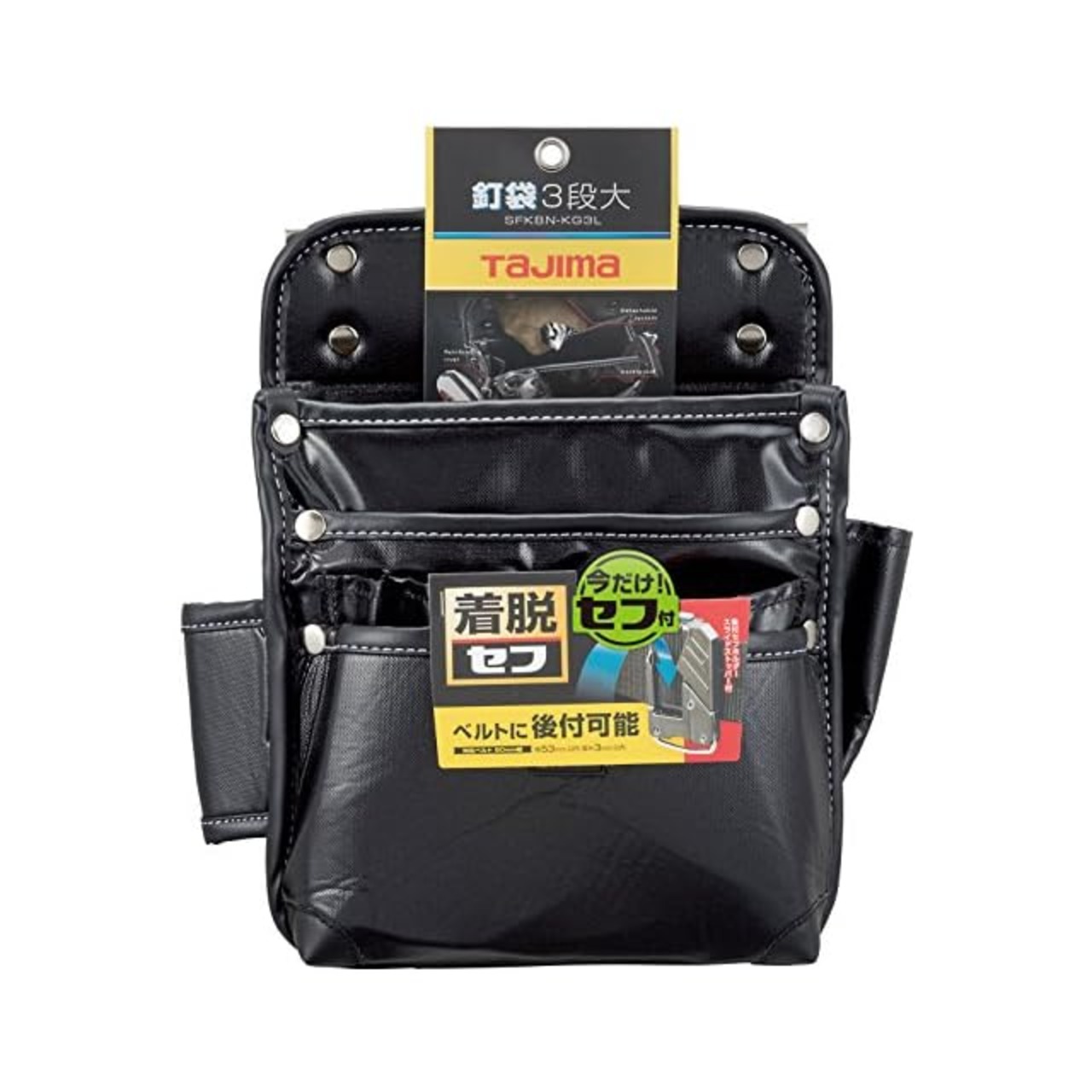 タジマ セフシステム 着脱式腰袋 釘袋3段大 水気に強い高密度ナイロン SFKBN-KG3L 着脱楽々 ベルトに後から装着可能 腰道具の組み換えが簡単 使う道具だけを選んで装着 腰の負担軽減 工具の落下防止 | emishop315