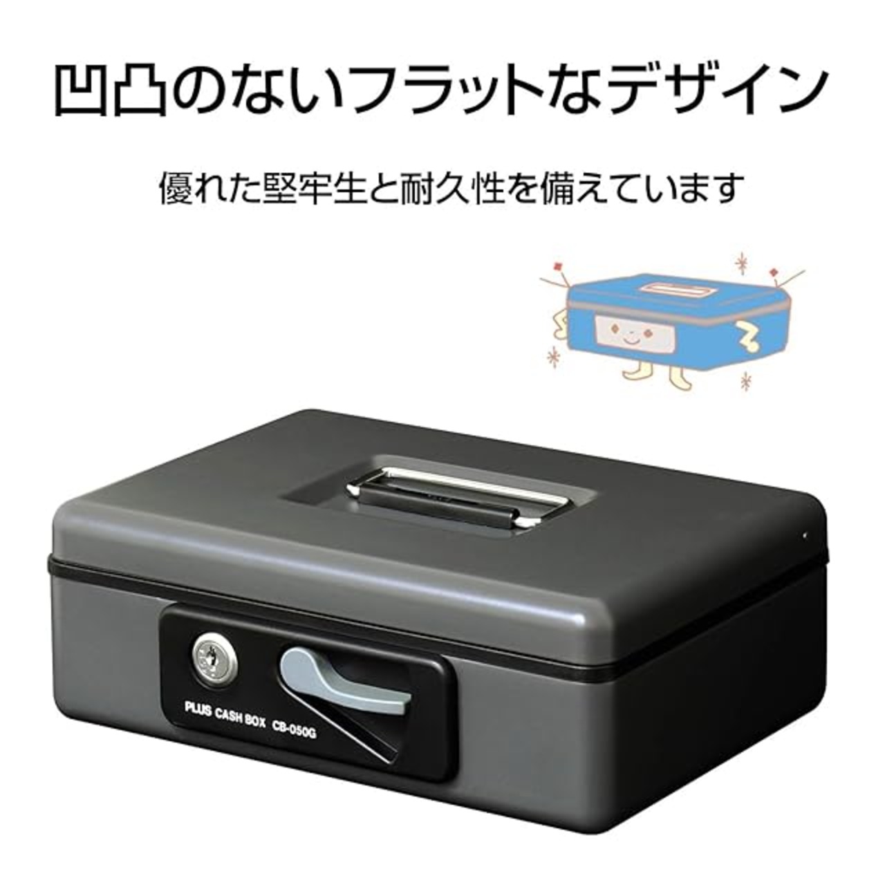 商品名:プラス 金庫 手提金庫 小型 W230×D194×80mm ダークグレー 12-863