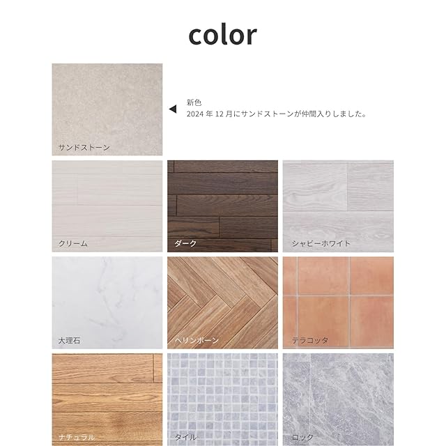 【組成】 表面:塩化ビニル 裏面:ガラス繊維不織布 付属:滑り止めシール8枚組