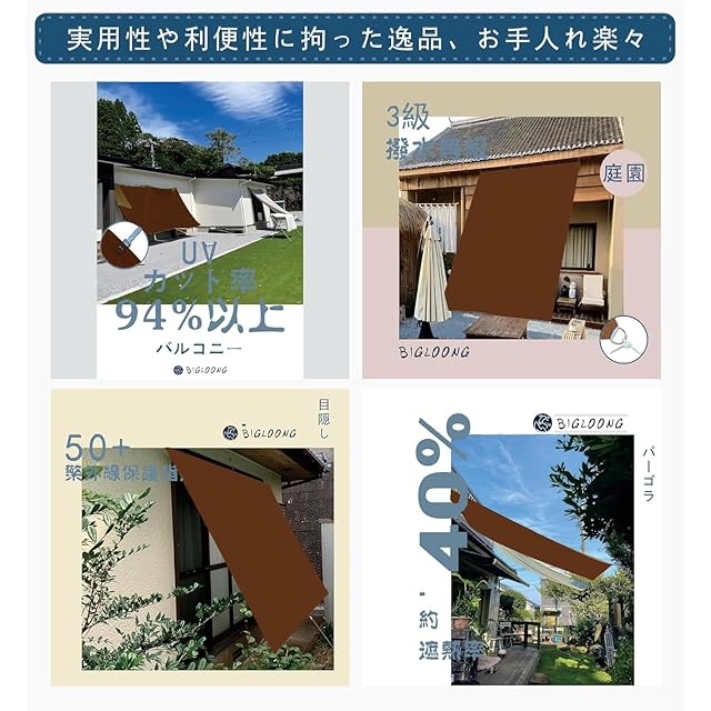 BIGLOONG 日除けシェード 日よけ 暑さ対策 雨除け撥水防水 サンシェード 400Dポリエステル ハトメ式強度UP PU塗装 紫外線UVカット ベランダ オーニング 芝生 庭園 プール 池 デッキ カイルヤード 中庭 裏庭 ドアヤード 公園 カーポート パーゴラ サンドボックス (コーヒー, 3*4M) | emishop315