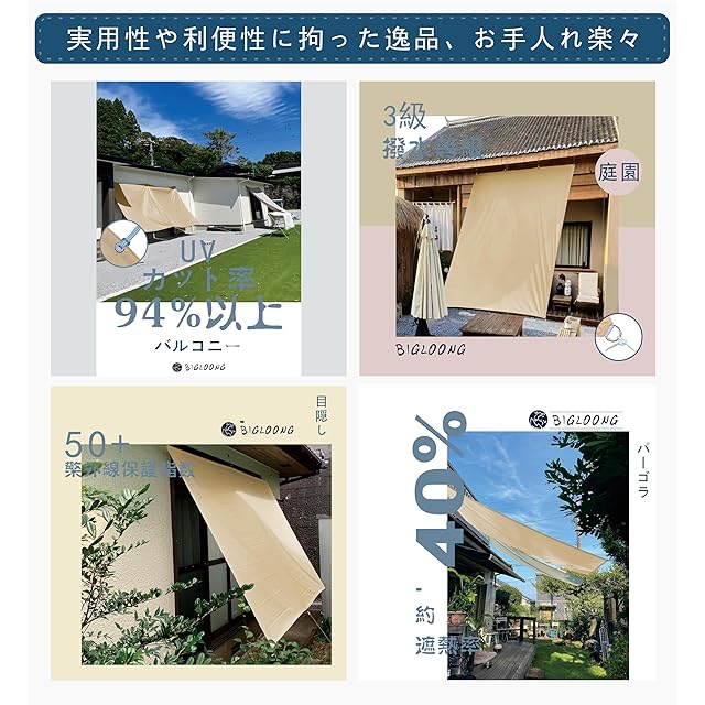 【防水機能が抜群生地】高品質防水ポリエステル生地とは風、熱、風邪、酸化、腐食および放射線に強いという生地です、防水加工があり、窓、庭、ベランダやその他室外によく使用されている。使わない時は折りたたんで収納できる。