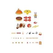 ハンバーガーのかたちをしたお店とデリバリーバイク、お人形のセットです。