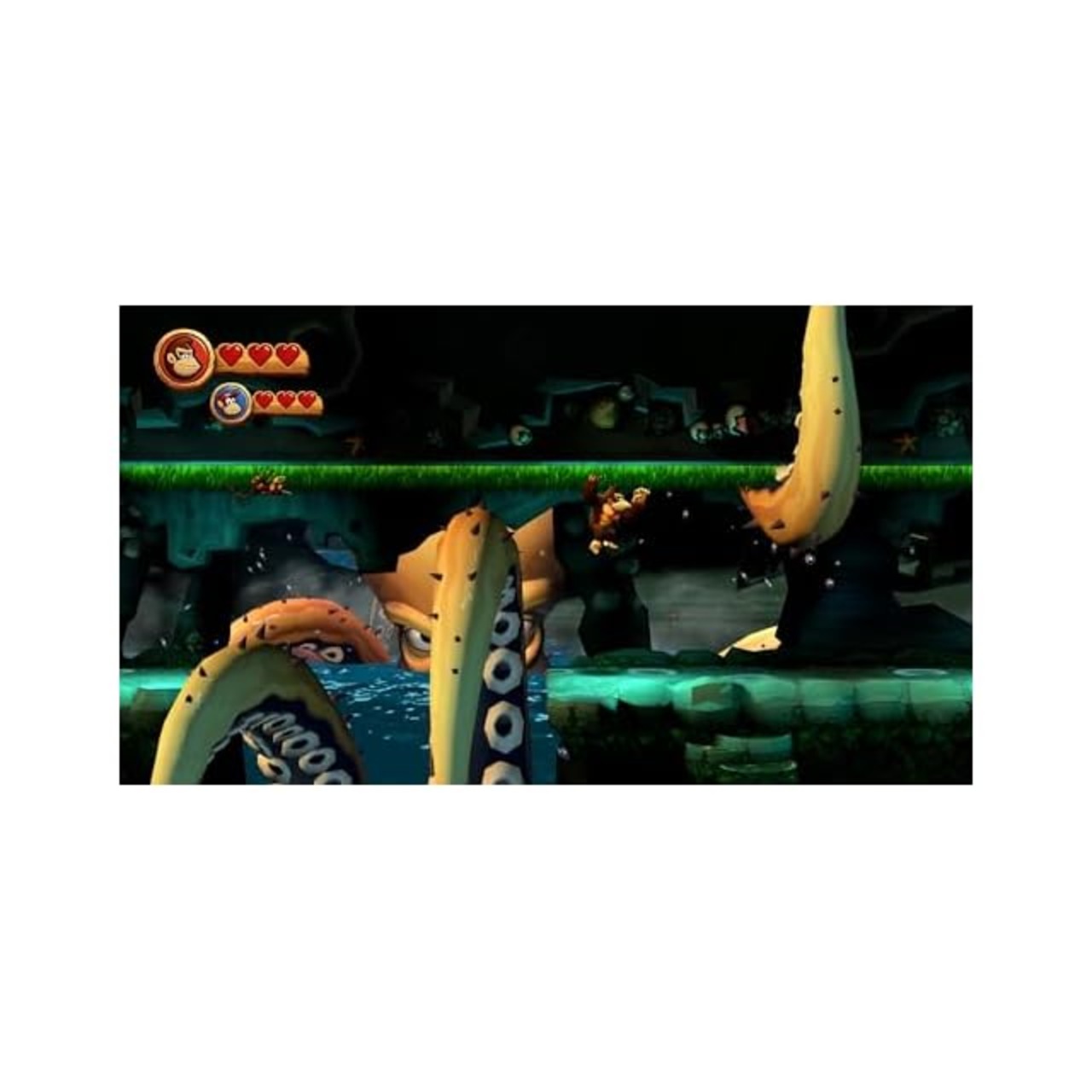 【大好物のバナナを取り戻せ】動物を操る「ティキ族」に奪われてしまった大量のバナナを取り戻すため、ドンキーコングとディディーコングの冒険が始まります。