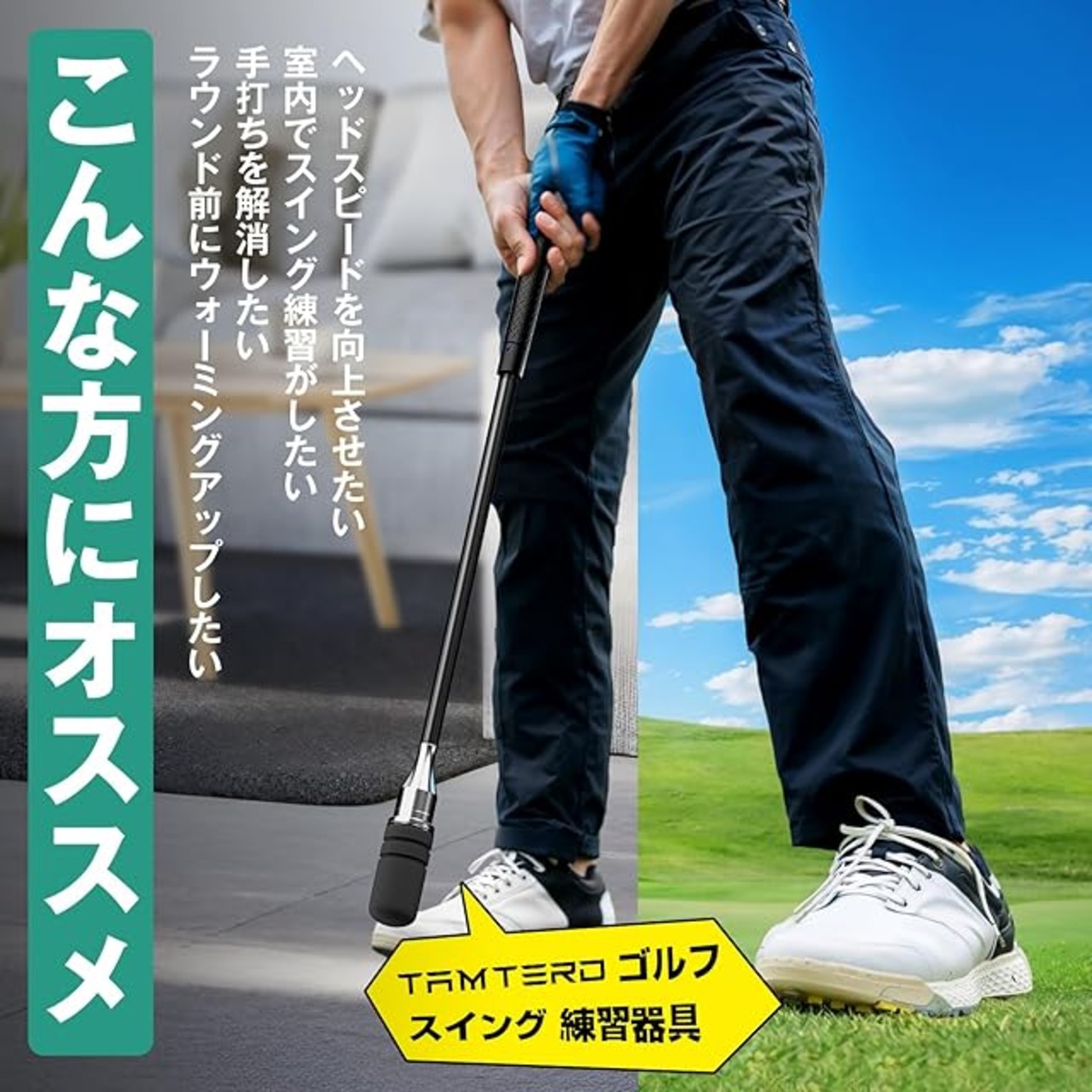 【飛距離が伸びずに悩んでいる方にオススメ】ゴルフスイングの調子が悪くなったら?我流で伸び悩んでいたら?飛距離不足の原因は「腕だけで振っている」「アーリーリリースしている」かもしれません。そんなお悩みをこの音付きのゴルフ練習器具で確認・改善することができます!一瞬ではなくて、毎日、少しずつでもgolf素振りをすることが大切です。音を気にしながら、インパクトゾーンに意識を向けることで、スイングテンポが狂ったり、身体が動きすぎたりすることを防く。Tamterdゴルフスイング練習器具はごるふ初心者からプロまで、どなたにも満足のいく効果をもたらします。