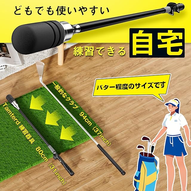 【室内でも使いやすいコンパクトサイズ、自宅でこっそり上達】仕事がバタバタしていると、練習場に行く時間も取れないときがあるのですが、Tamterd ゴルフ素振り棒は、全長約80cmとアイアンより少し短いサイズなので、室内での素振りがしやすい!1K6畳の間取りでもスイングできる長さとなっております。持ち運びもしやすいため、コース前のウォーミングアップとしてもお使いいただけます。※室内でご使用の際は、周囲の人やモノに十分ご注意の上お使いください。 【24ヶ月期間】本製品ゴルフ 練習 器具には24ヶ月の期間が設けられています。もしゴルフ グッズに不具合などが発生した場合は、弊社までご連絡いただければ、迅速に日本語で対応させていただきます。