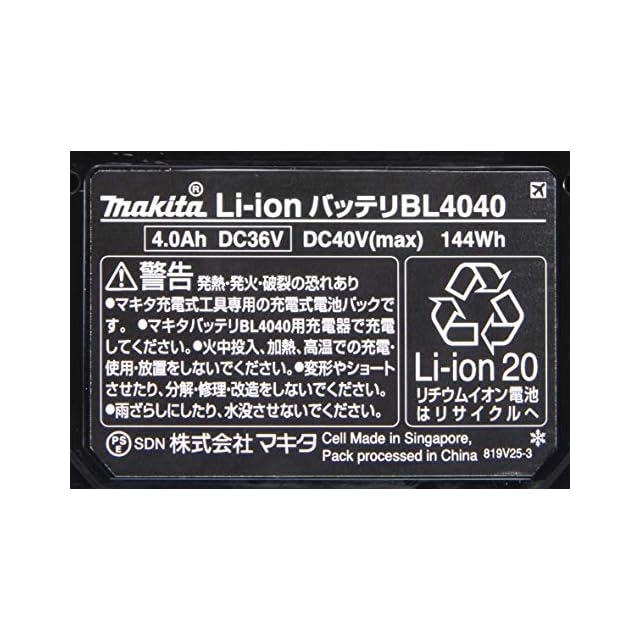 電圧: 36V(40Vmax)・容量: 4.0Ah