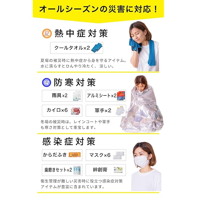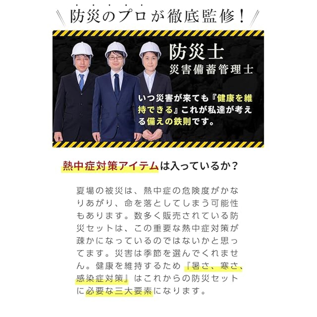 ✅【災害は季節を問わずやって来る!】外にいるだけで身の危険を感じる暑い夏に寒い冬。そんな時にもし災害が起きたら・・・。防災のミカタはあらゆる危機を想定して熱中症対策と寒さ対策の防災グッズを備えてます。身を守るために必要なものを考え抜いた精鋭の防災セット、災害時の避難生活は防災のミカタの非常用持ち出し袋にお任せください。